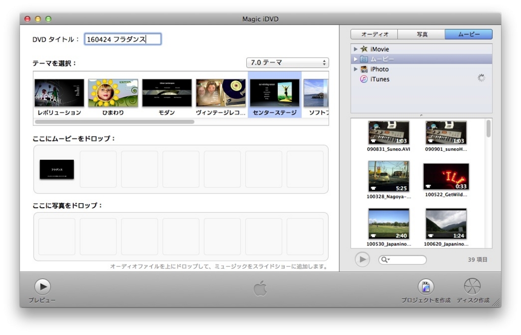 初めてiDVD以外のソフトでDVD作成してみましたが、改めて「iDVDは、操作が簡単で画質も良い。おしゃれなタイトルを手軽に作成できる」という素晴らしさを再認識させられる結果となりました。今はもう入手できないのが惜しいです。今回、無料ソフトの「Burn」でもそれなりの画質でDVD作成できるようになったのでよかったです。