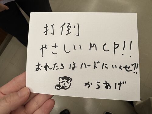 『PythonではじめるMCP開発入門』発売しました ジャーン(古い効果音)、ついに発売しました。 PythonではじめるMCP開発入門作者:李 碩根,からあげ,渡邊 拓夢講談社Amazon 発売日前日に著者と編集者で出版のお祝い会しつつ、いくつか東京の本屋を回ることが…