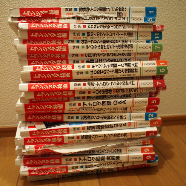 早速電子化を開始。会社に入ってから4年程買い続けた「トランジスタ技術」タワーからチャレンジ。僕は広告とかのページを抜いて保存しているのですが、それでもこの量。