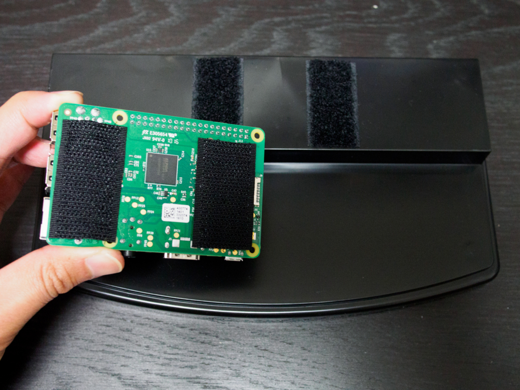 ダイソーのケースとRaspberry Piをベルクロテープで固定