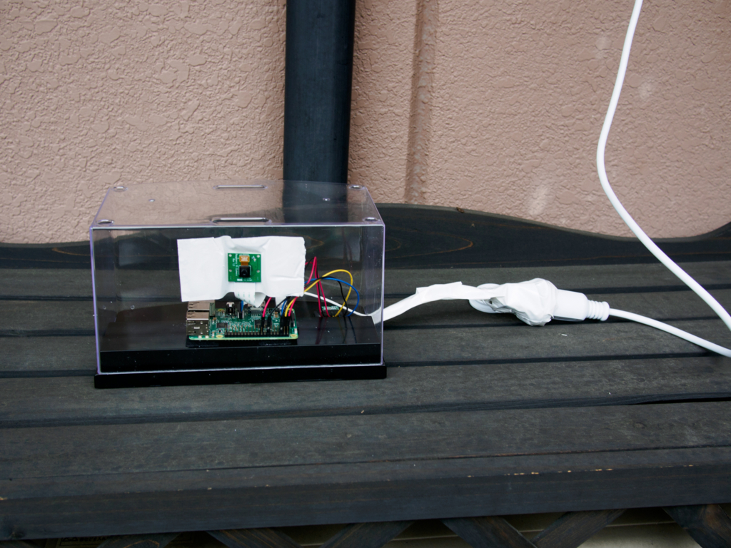ちょうどケース作成した日に雨が降っていたので、一晩中動かしてみましたが止まること無く無事完動しました。後心配なのは、真夏の直射日光下で止まらず動いてくれるかどうかですね。ヒートシンクなどで熱対策したいのですが、なかなか手軽で気休め以上の効果ありそうなものが無かったので、まずはこの状態でチャレンジしてみて、ダメだったら何か考えるというダメな感じでいってみようかと思います。もしお手軽な放熱方法ありましたら教えて下さい。