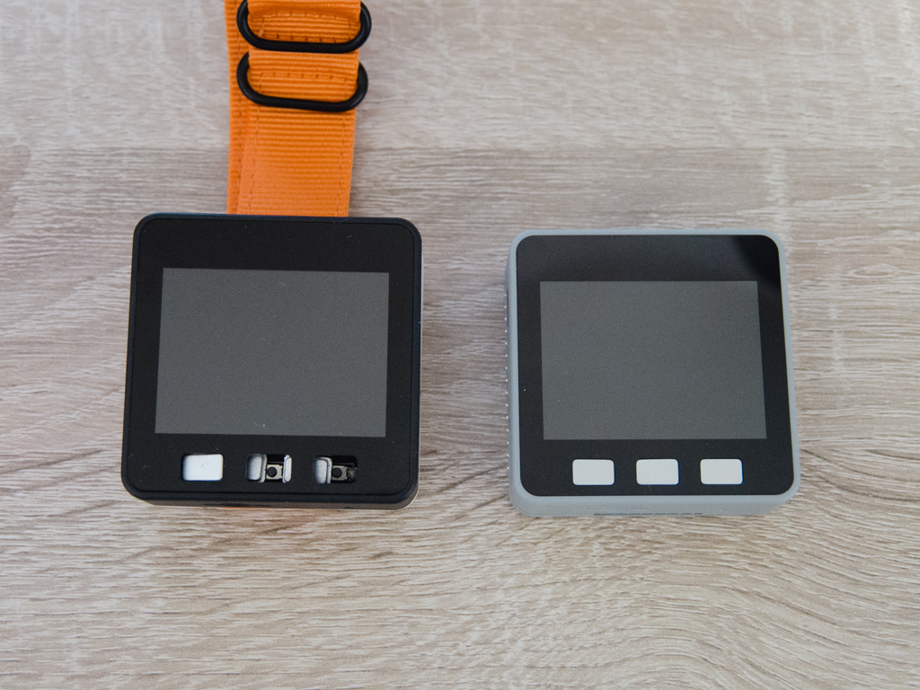 左が無残に壊れたM5Stack。スイッチ以外は無事なので、表示用として使います