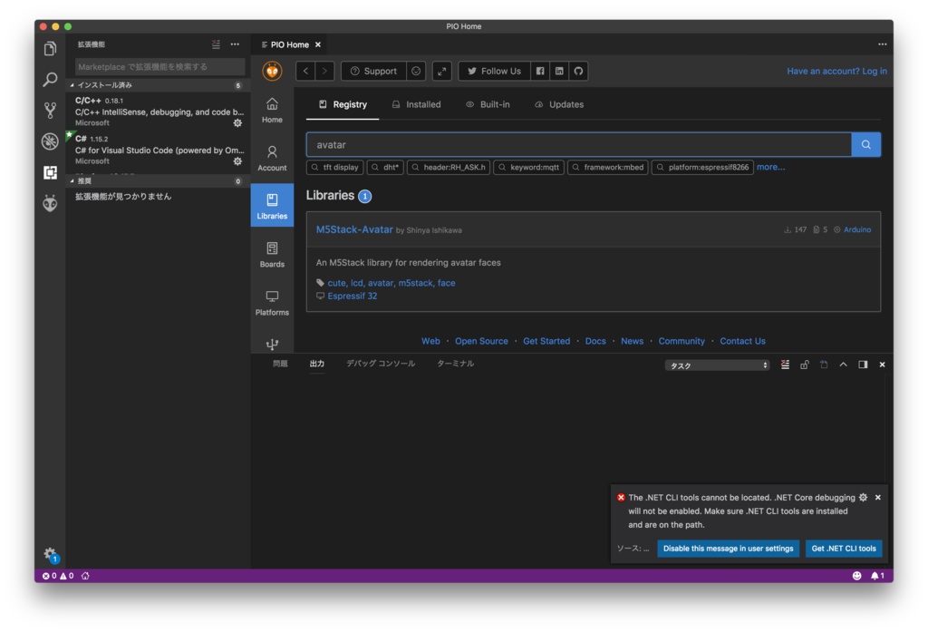 Platform IO IDEから、M5Stack-Avatarをインストール