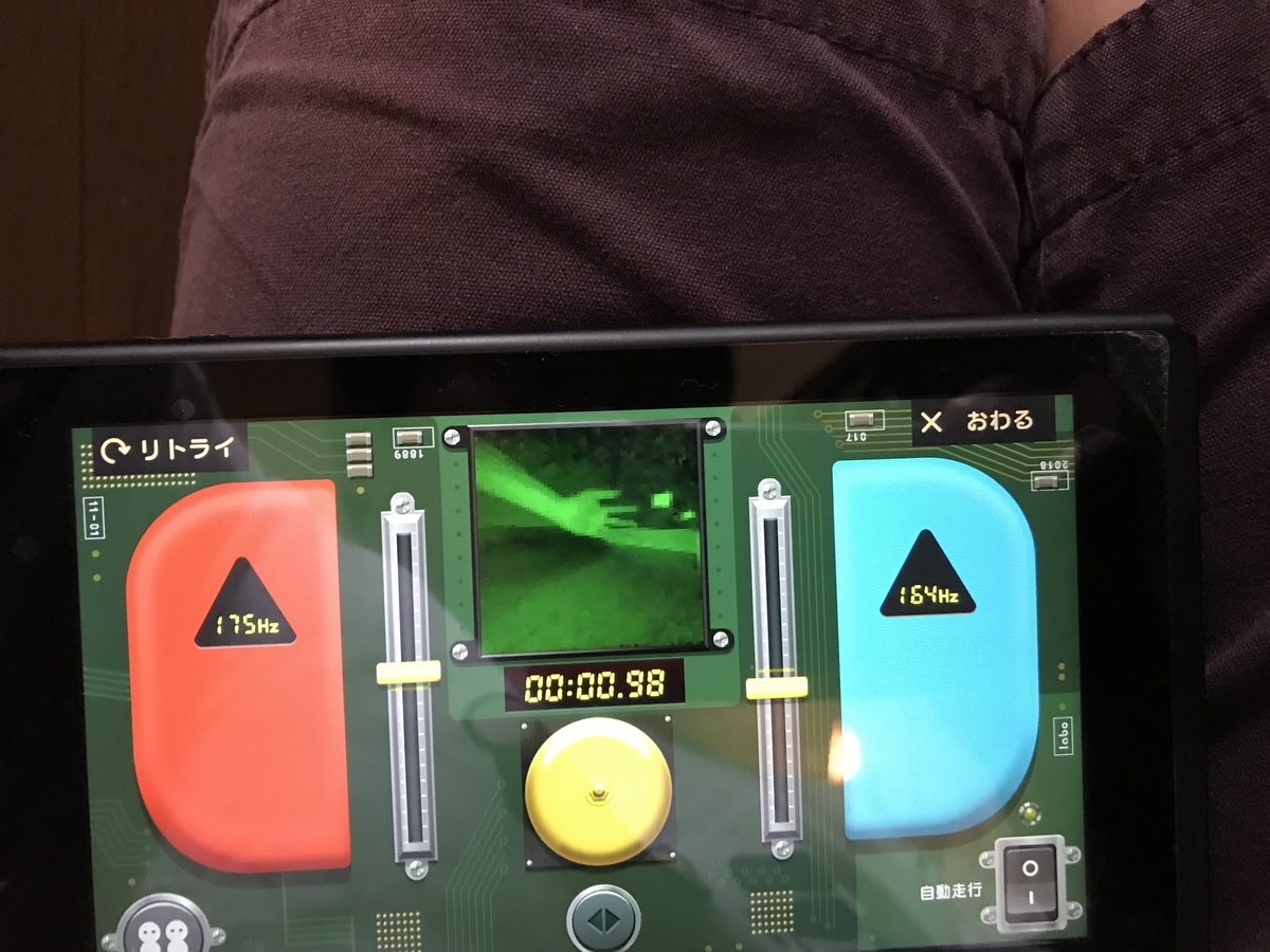 うーんうーんと悩んでいたところ、娘が遊んでいたリモコン戦車の画面でふと気付きました。リモコン戦車のIRカメラの画像は、Nintendo Switchのコントローラから見ることができます。