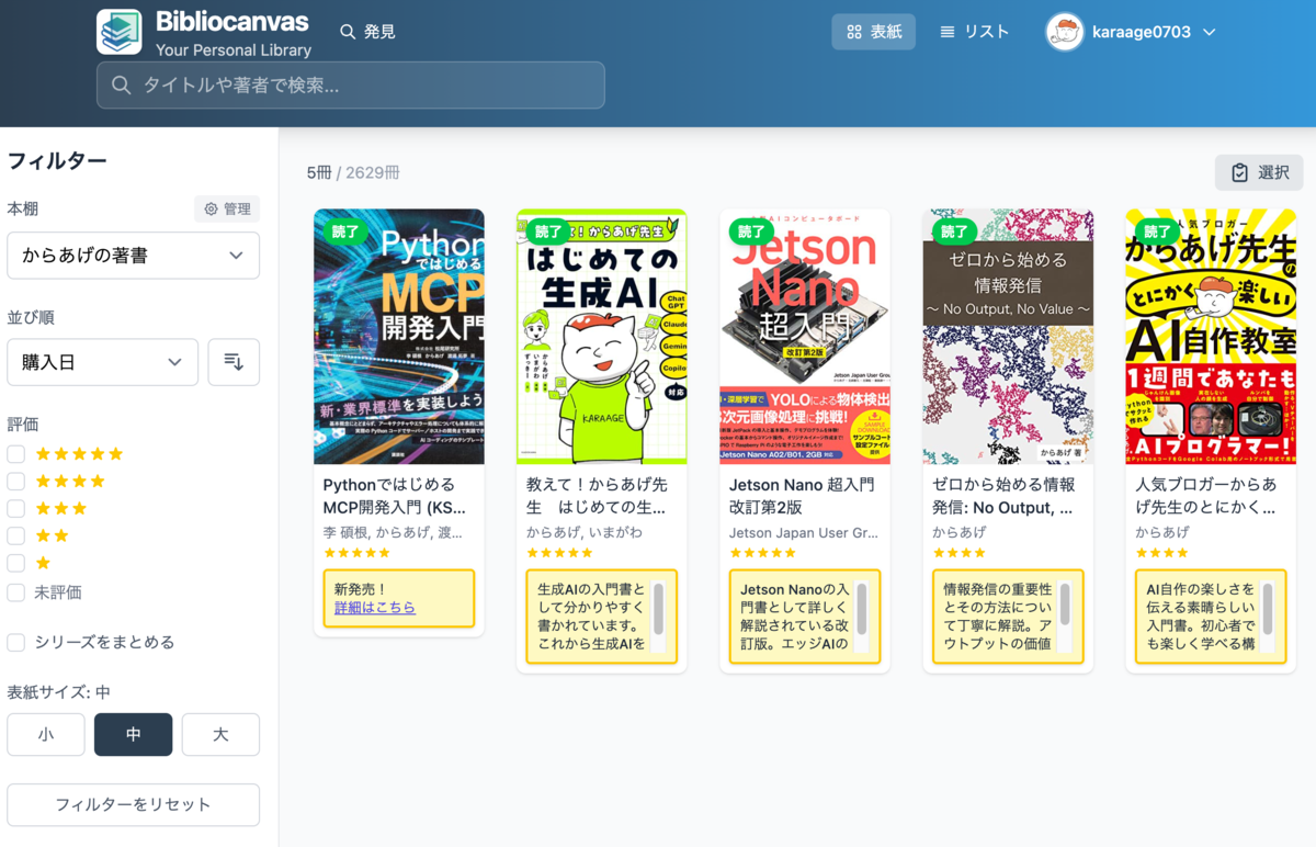 - 検索・フィルター: タイトル・著者・星評価での絞り込み